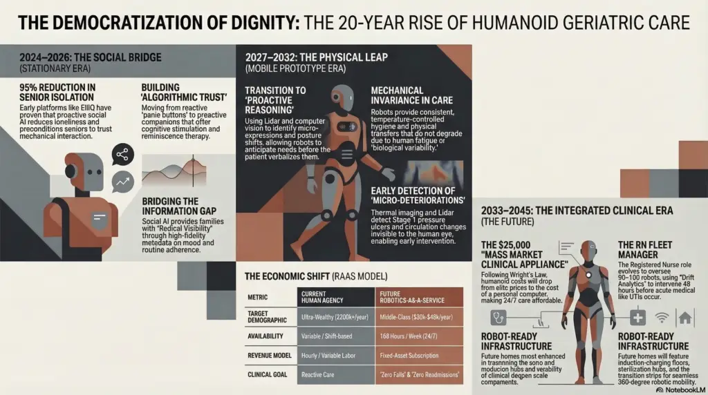 The Democratization of Dignity: Navigating the 20-Year Evolutionary Arc of Humanoid Robotics in Geriatric Home Care