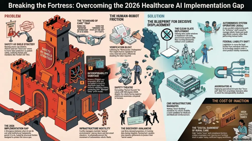 By: Jude Chartier RN / AI Nurse Hub Date: March 19, 2026 Abstract The integration of Artificial Intelligence (AI) and embodied robotic systems into healthcare has reached a technological tipping point. However, the transition to “full integration” remains stalled by a complex “Fortress of Resistance” constructed by legacy labor unions, legal entities, and financial gatekeepers. […]